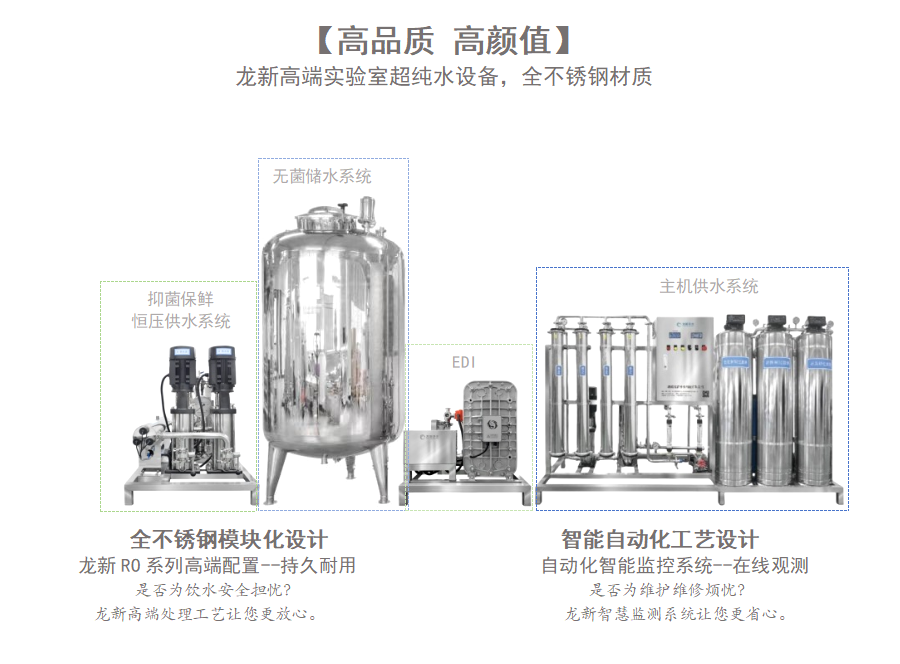 該系列設(shè)備適用于全自動生化分析儀、檢驗分析、試劑配液、實驗室試驗、微生物培養(yǎng)、容器沖洗用水等。
