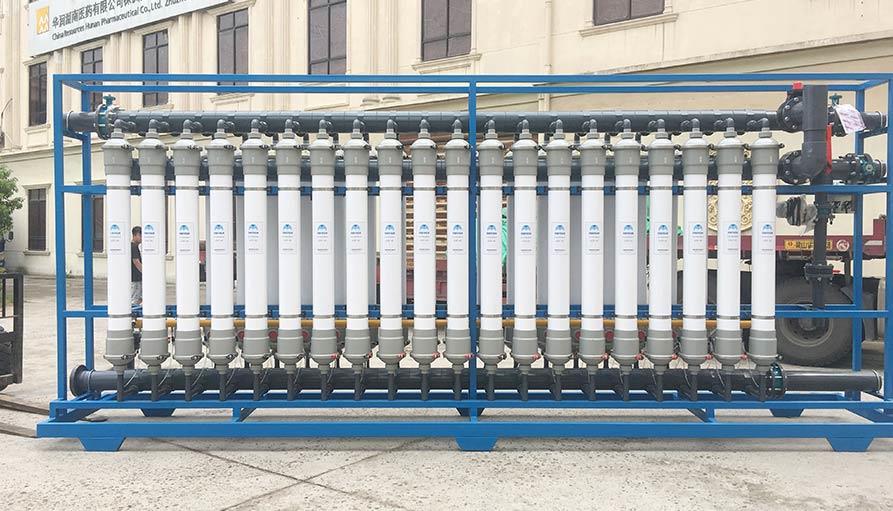 各種膜過濾能除掉直徑大于 0.2微米的顆粒,但對于清除有機物則不如反滲透和超濾有效。超濾是把各種選擇性的分子分離。在超濾過程中,水在壓力下流過一個卷式或中空纖維膜棒。膜孔徑在10~200埃范圍內,薄膜厚度為0.1~0.5微米,附在一個中孔的纖維棒內壁上,超濾能除去細菌和0.05微米的粒子。