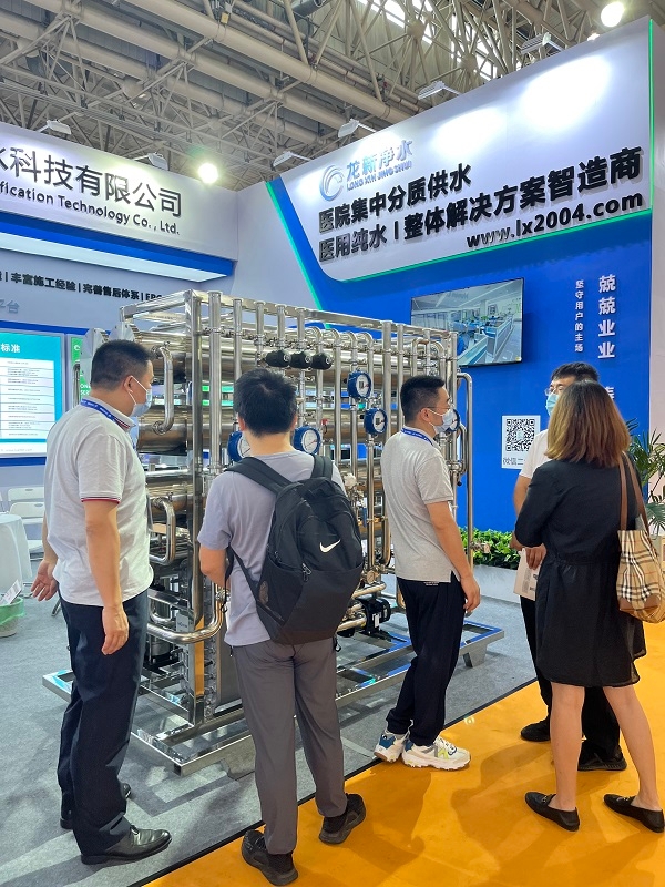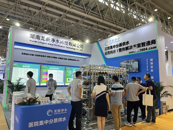龍新凈水以創新為公司發展源動力,在醫用純水領域始終推陳出新,為美好醫院建設及高質量發展推波助瀾。前來龍新展位參觀洽談的觀眾熙來攘往,龍新凈水的“醫院集中分質供水系統”吸引了眾多參展者前來了解,該系統解決了以往醫院各科室純水單獨供應的現狀,具備降耗減排、節省人力空間、智能監控、維護便捷等一系列優勢,為醫院的持續發展和高效管理奠定了基礎。