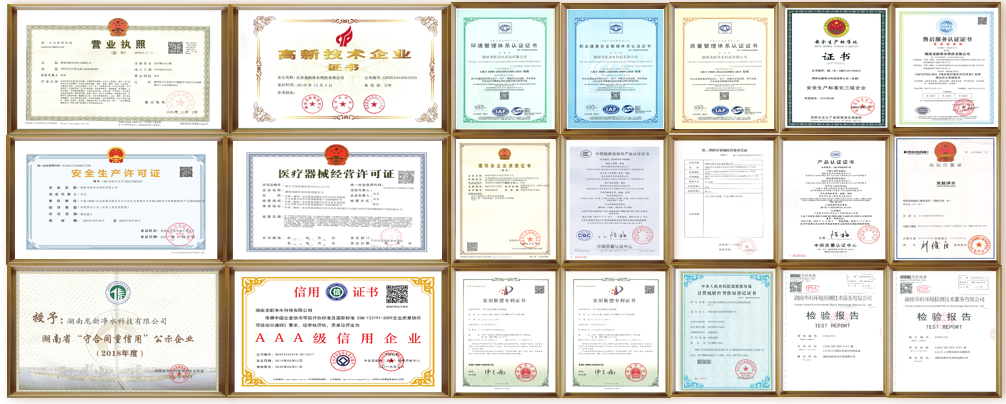 目前,龍新公司擁有通用專業承包及建筑機電工程專業承包資質、質量管理體系、環境管理體系、職業健康安全管理體系、五星級售后服務認證等多項認證,并參加了《醫院水系統技術導則》、《醫院智慧水系統整體規劃與運維管理標準》、《醫院機構污水處理系統建設標準》等多項水處理行業標準的編寫與制定,全力打造高端水處理一站式服務的專業品牌。
