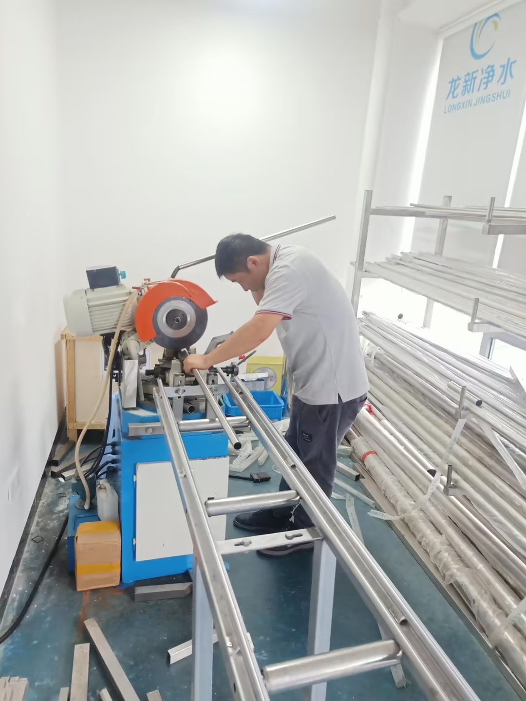 走進生產(chǎn)車間,機器的轟鳴聲不斷,員工們正緊張有序地在各自的工作崗位忙碌著,下料、沖壓、焊接、安裝、接線、調(diào)試、打包等工序有條不紊,一套套水處理系統(tǒng)正源源不斷地生產(chǎn)出來,生產(chǎn)現(xiàn)場秩序井然。