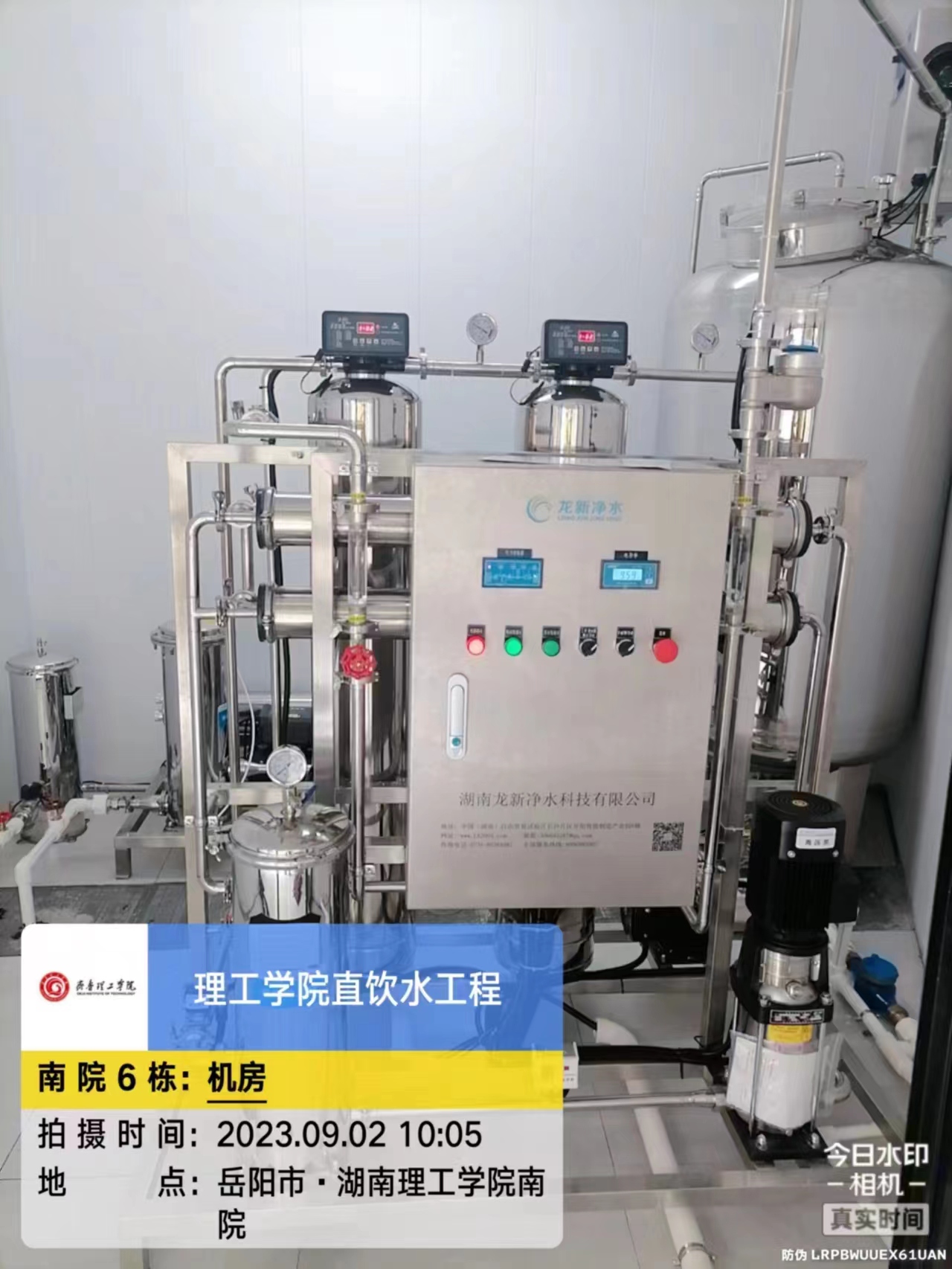 龍新新凈水為湖南理工學院宿舍樓提供直飲水系統建設、運營管理及維護管理,除了前期的安裝和調試,龍新凈水會定期對直飲水系統進行巡檢維護及更換濾芯、膜等耗材,為師生的飲水安全保駕護航。